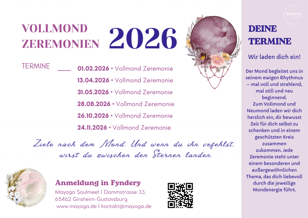Ob beim Neumond, um neue Samen zu pflanzen, oder beim Vollmond, um Altes zu reflektieren und loszulassen – jede Zeremonie schenkt dir Raum für Selbstfürsorge, Bewusstsein und Selbstliebe.